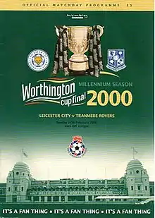The 2000 Football League Cup Final was played between Leicester City, in their third final appearance in four years, and First Division side Tranmere Rovers at Wembley Stadium on 27 February 2000. It was the 34th and last League Cup Final to be played at the original Wembley Stadium.[1] Leicester won 2–1 to become the last team to win the League Cup at the old Wembley.[2][3][4]