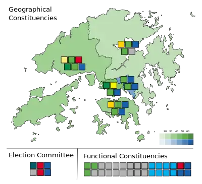 | Parties and allegiances | Geographical constituencies | Functional constituencies | ECC seats |