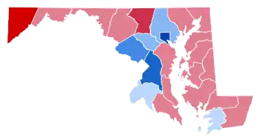 In this election, Maryland voted 15.87% to the left of the nation at-large.[3]
