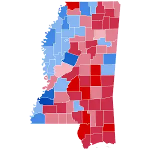 Mississippi was won by Governor George W. Bush with a double-digit margin of victory of 16.92%. Bush won most of the counties and congressional districts of the state. Bush dominated the east part of the state and Gore did well in the west. As of the 2020 presidential election, this is the last election in which Jasper County voted for the Republican candidate and the last election in which Yalobusha County voted for the Democratic candidate. This is also the last election in which Mississippi voted to the right of neighboring Alabama. Bush became the first Republican to win the White House without carrying Adams or Hinds Counties since Richard Nixon in 1968.