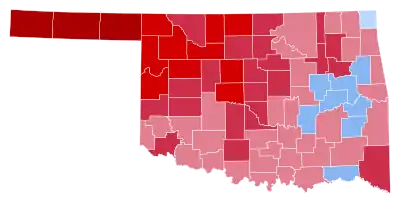 | Oklahoma | 139,078 | 62.34% | 81,590 | 36.57% | 2,443 | 1.09% | 57,488 | 25.77% | 223,111 |