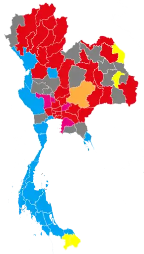 | Thai Rak Thai | 11,565,103 | 39.91 | 48 | 9,616,204 | 35.68 | 200 | 248 | |