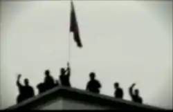 Close to Miraflores, a line of police and National Guard held the marchers for a time, before the marchers pressed.[65] Nelson says that Chavistas belonging to Bolivarian Circles, some with that had military training in Cuba, were also stationed outside of Miraflores. The Circles had been positioned outside of the palace throughout the week during the unrest.[66] According to Nelson, government officials used the hours it took for the march to travel eight kilometres (5 mi) to the palace to call on loyalists to gather at Miraflores. National Assembly Deputy Juan Barreto told loyalists through the media covering the situation, "The call is to Miraflores! Everyone to Miraflores to defend your revolution! Don't let them through!"[66] A crowd of government supporters, in close but smaller numbers to the anti-Chavez marchers, quickly arrived from shanty towns.[67] Some government supporters, who began to gather then, were armed with Molotov cocktails, rocks, sticks, chains, baseball bats, and metal pipes, and were ignored by the Venezuelan National Guard stationed to defend Chávez according to Nelson.[68] Nelon writes that General Rosendo claimed that Defense Minister José Vicente Rangel ordered Freddy Bernal to prepare the Bolivarian Circles to attack the opposition demonstration.[69]