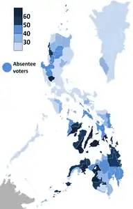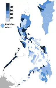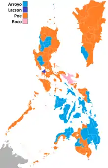 ![]() Map showing the official results taken from provincial and city certificates of canvass. The inset shows Metro Manila. | ||||||||||||||||||||||||||||||||||||||||||||||||