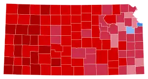 Kansas was won by incumbent President George W. Bush by a 25.4% margin of victory. Prior to the election, all 12 news organizations considered this a state Bush would win, or otherwise considered as a safe red state. On election day, it trended Republican from the 2000 election by a swing margin of almost 5%. He won every single congressional district and county, excluding two: Wyandotte County and Douglas County.