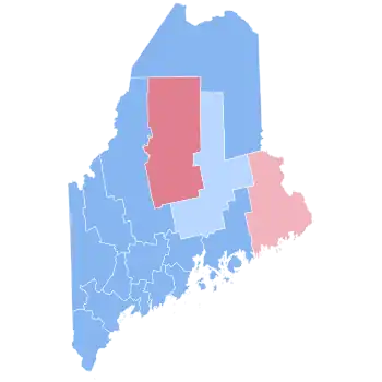 Once a typical Yankee Republican state, Maine has not been carried by a Republican presidential nominee since George H. W. Bush did so in 1988. While the younger Bush did make a play for the state in 2004, John Kerry ultimately won it by a fairly comfortable 9-point margin, including its two Congressional districts. Maine is one of two states, the other being Nebraska, which allocate their electoral votes by Congressional district. A candidate is awarded an electoral vote for each district won, even if the candidate loses statewide, while the statewide winner is awarded two additional electoral votes. In 2016 and 2020, Republican Donald Trump won Maine's 2nd district despite losing the state overall, and thus he received one electoral vote from the state both times. This makes George W. Bush the last Republican, and the last candidate of either party until Joe Biden in 2020, to win a presidential election without carrying Maine's 2nd district.