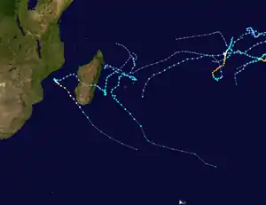 Météo-France's meteorological office in Réunion (MFR) – the official Regional Specialized Meteorological Center for the South-West Indian Ocean – tracked and named all tropical cyclones from the east coast of Africa to 90° E, and south of the equator.[1] The Joint Typhoon Warning Center (JTWC), which is a joint United States Navy – United States Air Force task force that issues tropical cyclone warnings for the region, also issued advisories for storms during the season.[2]
