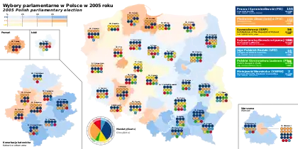 Parliamentary elections were held in Poland on 25 September 2005.[1] Thirty million voters were eligible to vote for all 460 members of the lower house, the Sejm and all 100 members of the upper house, the Senate.