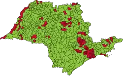 ![]() Candidate with the most votes per municipality (645): José Serra (629 municipalities) Aloizio Mercadante (13 municipalities) Orestes Quércia (3 municipalities) | ||||||||||||||||||||