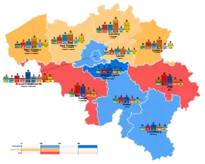 These Francophone parties fielded candidates in the Walloon Region and in the electoral district Brussels-Halle-Vilvoorde.