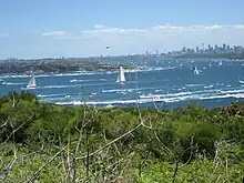 ![]() Wild Oats XI, City Index Leopard, and Skandia going through Sydney Heads | |