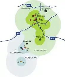 - 1 2 "Trading Standards and police warn people to respect Foot and Mouth restrictions" Archived 27 October 2007 at the Wayback Machine – Surrey Police Dated 9 August 2007