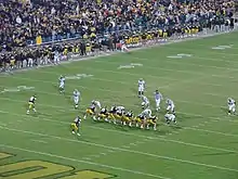 Iowa entered the game at Heinz Field undefeated and the only FBS team remaining to not give up a touchdown in the 2008 season. Pittsburgh, despite losing their season home opener to Bowling Green, posed a tough team led by 2007 Big East Rookie of the Year and future NFL icon LeSean McCoy. Pittsburgh had finished third in the Big East preseason media poll after spoiling West Virginia's national championship hopes the previous season. The Hawkeyes, still amid a quarterback battle between Christensen and Stanzi, decided to start and end the game with Christensen while rotating throughout the first half. Iowa struggled to defend quarterback draw plays and found themselves in a 14-3 hole with 12:34 left in the second quarter, despite holding McCoy to 18 rushing yards in the first half. Touchdowns from Shonn Greene, who rushed for a game-high 147 yards, and Christensen enabled Iowa to take a 17-14 late third-quarter lead. McCoy put the Panthers in front for good with a 27-yard fourth-quarter touchdown run. Trent Mossbrucker connected on a 39-yard field goal to get the Hawkeyes within a point, but both ensuing Iowa drives sputtered ending in a sack and a fumble, respectively, giving Pittsburgh the win.[44][45][46]