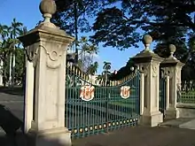 At around 9:00 a.m. on the morning of April 30, 2008, roughly seventy members of a group that described itself as the Hawaiian Kingdom Government blocked entrance to the grounds of ʻIolani Palace in a move to assert the group's purported status as the Hawaiian Kingdom's government. According to the group's leader, Mahealani Kahau, the group put up yellow "No Trespassing" signs at the entrances to the palace grounds to "give awareness and notice to everyone that passes that the Hawaiian Kingdom Government has resumed its lawful status as the seat of government." Following negotiations between the group and the Hawaii Department of Land and Natural Resources, the state agency with jurisdiction over the palace, the gates were reopened at around 2:00 p.m. No one was arrested.[2]