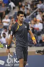 Novak Djokovic made his tennis do the talking as he won his first title of the year in Dubai Tennis Championships defeating David Ferrer.[30] He then won three other titles in the inaugural Serbia Open defeating Łukasz Kubot,[31] China Open defeating Marin Čilić[32] and in Davidoff Swiss Indoors defeating Roger Federer.[33] He then won his first Masters title of the year at the BNP Paribas Masters over Gaël Monfils.[34] He finished as a runner-up at the Western & Southern Financial Group Masters, Gerry Weber Open, Internazionali BNL d'Italia, Monte-Carlo Rolex Masters and the Sony Ericsson Open. He also made the semifinal of the US Open. He is the Defending champion and has a 4–4 record. This is his 3rd appearance.
