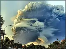 ![]() Aerial view of the fire and the resulting smoke cloud | |