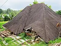 The first of the 2009 Sumatra earthquakes (Indonesian: Gempa bumi Sumatra 2009) occurred on 30 September off the coast of Sumatra, Indonesia with a moment magnitude of 7.6 at 17:16:10 local time. The epicenter was 45 kilometres (28 mi) west-northwest of Padang, West Sumatra, and 220 kilometres (140 mi) southwest of Pekanbaru, Riau. Government and authorities confirmed 1,115 dead, 1,214 severely injured and 1,688 slightly injured.[3] The most deaths occurred in the areas of Padang Pariaman (675), Padang (313), Agam (80) and Pariaman (37).[3] In addition, around 135,000 houses were severely damaged, 65,000 houses were moderately damaged and 79,000 houses were slightly damaged.[3] An estimated 250,000 families (1,250,000 people) have been affected by the earthquake through the total or partial loss of their homes and livelihoods.[4]