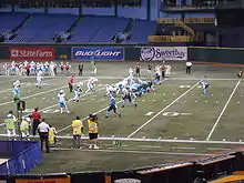 The Florida Tuskers (right) against the Las Vegas Locomotives (left) at Tropicana Field on October 30