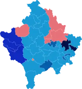 Incumbent PM Hashim Thaçi claimed victory in the election before the result was certified by the CEC[42] with exit polls showing the Democratic Party of Kosovo won 31 percent and the Democratic League of Kosovo followed with 25 percent, though this was not yet certified by the CEC.[43][44] Exit polls also indicated a 47% turnout.[45]