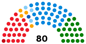 Last election 52 seats, 53.9% 28 seats, 43.2%