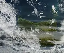 The 2011–2012 Puyehue-Cordón Caulle eruption ([puˈʝewe]) was a volcanic eruption that began in the Puyehue-Cordón Caulle volcanic complex in Chile on 4 June 2011. The eruption, which occurred from the Cordón Caulle fissure after 51 years of the volcano being inactive, is one of the largest volcanic eruptions of the 21st century thus far.[2] At least 3,500 people were evacuated from nearby areas,[3] while the ash cloud was blown across cities all around the Southern hemisphere, including Bariloche, Buenos Aires, Montevideo, Stanley, Porto Alegre, Cape Town, Hobart, Perth, Adelaide, Sydney, Melbourne, Wellington, Auckland and Port Moresby, forcing airlines to cancel hundreds of international and domestic flights and causing travel chaos.