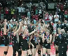 ![]() 2011 FIVB Girls Youth Volleyball World Championship awarding ceremony. World Champion Turkey celebrates with the cup. | |
