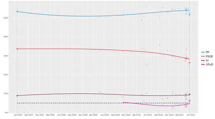 - ↑ "Barómetro electoral autonómico" (PDF). Celeste-Tel (in Spanish). 9 May 2011.