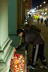 Russia — President Dmitry Medvedev expressed his condolences.[71] He also expressed his hope that law enforcement agencies "will trace down the masterminds of the crime" and that "we will help Belarus", further adding that "The Belarusian authorities should take much effort to rehabilitate the general moods after the terrorist act."[72] Prime Minister Vladimir Putin expressed his condolences and said "On behalf of the Russian government and myself, I extend deepest condolences. We know firsthand the meaning of such actions. Our sincere sympathy goes from the heart. We like no other, empathise with the fraternal Belarusian nation in its grief. We hope for a speedy full recovery of all injured people. You can count on any help and assistance from our side, including in the investigation of the incident".[73]