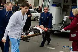 The wounded victims were admitted to five hospitals in Minsk.[27] Among the injured, 22 were in a serious condition;[3][27] one of them died in the hospital.[34] Another 30 suffered injuries of moderate severity.[32]