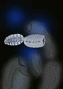 - ↑ Poinar, G. (2011). "Vetufebrus ovatus n. gen., n. sp. (Haemospororida: Plasmodiidae) vectored by a streblid bat fly (Diptera: Streblidae) in Dominican amber". Parasites & Vectors. 4 (229): 1–5. doi:10.1186/1756-3305-4-229. PMC 3253689. PMID 22152687.
