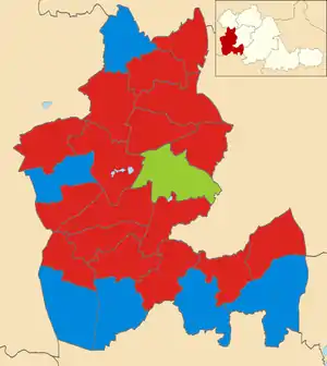 The 2012 Dudley Metropolitan Borough Council election was held on 3 May 2012 to elect members of Dudley Metropolitan Borough Council in the West Midlands, England, as part of the 2012 United Kingdom local elections. 26 seats were up for election, and the results saw the Conservatives losing to a majority of 11 seats to Labour.[1]