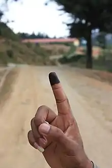 The Australia Timor-Leste Friendship Network confirmed free and fair elections in East Timor. There were only minor technical problems.[49] The American International Republican Institute also attested to a peaceful election in East Timor, which remained without major incidents and generally met international standards. Only minor irregularities were registered, but these are said to have had no effect on the election results. For example, not every polling station was checked before casting the ballot to ensure that the voter did not already have an ink-stained finger, which would indicate that the vote had already been cast. In some polling stations, there were irritations regarding the positioning of voting booths, and election observers sporadically registered voters who had not yet reached the minimum age of 17.[50] UN Secretary-General Ban Ki-moon also congratulated East Timor for the peaceful conduct of the elections.[51] Praise also came from the European Union and the Community of Portuguese-Speaking Countries.[52] The Friendship Observer Mission (FOM), which consisted of various East Timorese and foreign members, listed several problems and violations in its report. This concerned, in addition to the Frenti-Mudança's campaign with paid election workers, lack of checking for stained fingers of voters (the sign that they had already voted) and the appearance at election rallies of men in traditional dress wielding traditional weapons such as spears and surik. While FOM recognises that these are part of the country's folklore, they see a fundamental problem with the appearance of armed people in election campaigns. The Chefe de Suco of Lelaufe announced at an election rally in Lifau that he would force all parties in his Suco to remove all banners and party flags that were not from the CNRT.[34] In the two polling stations in Lelaufe, the CNRT only received 32.63% and 44.20%.[53]