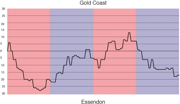 After a promising start to the season Essendon found themselves second on the ladder with a record of 8 wins and 1 loss (which was by a single point). The season then took an unexpected turn which saw Essendon lose 10 out of the last 13 games and miss the finals. They became the first club to have an 8–1 record and miss finals since Melbourne in the 1971 season.