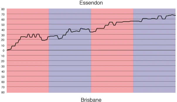 Rules for classification: 1) points; 2) percentage; 3) number of points for. (P) Premiers Ladder progressTribunal cases