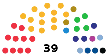 All 39 seats in the Sámi Parliament 20 seats needed for a majority | |||||||||||||||||||||||||||||||||||||||||||||||||||||||||||||||||||||