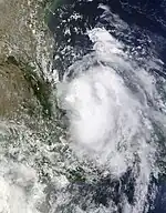 Heavy rains from the storm triggered flooding that temporarily isolated three communities in Tampico. One fatality was attributed to the storm. The hardest hit area was Cabo Rojo where 210 homes were affected, 80 of which sustained damage.[59] Total losses to the road network in Tamaulipas reached 80 million pesos (US$6 million),[60] while structural damage amounted to 7 million pesos (US$500,000).[61] In Texas, more than 2 in (51 mm) of rain fell in Brownsville, causing street flooding.[62] Two Mexican fishing vessels ran aground in the Port of Brownsville and a third on South Padre Island. The United States Coast Guard attributed the mishaps to the sudden influx of numerous ships.[63]