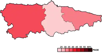 ![]() Constituency results map for the General Junta of the Principality of Asturias | |||||||||||||||||||||||||||||||||||||||||||||||||||||||||||||||||||||||||||||||||||||||||||||