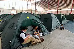 The 2015 Venezuela–Colombia migrant crisis refers to a diplomatic and humanitarian crisis that occurred in mid-2015 following the shooting of three Venezuelan soldiers on the Venezuela–Colombia border that left them injured and President of Venezuela Nicolás Maduro's response of deporting thousands of Colombians.[3][4] Maduro's response of declaring a state of emergency, closing the border to Colombia indefinitely and deporting thousands of Colombians that lived near the border,[5][6] struck fear in tens of thousands of other Colombians living in Venezuela resulting in their emigration from the country and a crisis involving separated families and Colombians seeking food and shelter.[6][7] The actions of President Maduro were questioned by human rights groups, the United Nations, the European Union and the United States.[8]