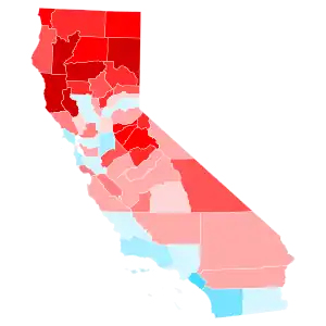 California was the only large state (one with at least 15 electoral votes[22]) in which Hillary Clinton lost no counties that had been carried by Barack Obama in 2012. Indeed, she herself flipped Orange County, the largest county to switch parties in either direction in 2016, into the Democratic column; no Democrat had carried Orange County since 1936, when Franklin Roosevelt carried every county in the state.[23] This made Donald Trump the first Republican to win the White House without carrying Orange County since the county's founding in 1889; he also became the first Republican to win the White House without carrying Ventura County since its founding in 1872, without carrying Riverside County since its founding in 1893, without carrying San Bernardino County since Ulysses Grant in 1868, without carrying Nevada, San Diego, or San Joaquin Counties since William McKinley in 1896, without carrying San Luis Obispo County since William McKinley in 1900, and without carrying Fresno, Merced, or Stanislaus Counties since Richard Nixon in 1968.