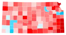 Trump carried the state with 56.16 percent of the vote, while Clinton received 35.74 percent.[3] Kansas was among eleven states (and the District of Columbia) in which Clinton improved on Barack Obama's margin from 2012 (though her vote share was lower than Obama's 38 percent), largely due to a significant shift towards Democrats in Johnson County.[4][5]
