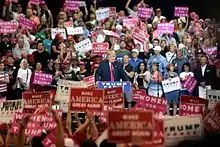 Incumbent Democratic president Barack Obama was ineligible to pursue a third term due to the term limits established by the Twenty-second Amendment to the US Constitution. Clinton secured the nomination over U.S. senator Bernie Sanders in the Democratic primary and became the first female presidential nominee of a major American political party. Trump emerged as his party's front-runner amidst a wide field of candidates in the Republican primary, defeating U.S. senators Ted Cruz and Marco Rubio, governors John Kasich and Jeb Bush, among other candidates. Trump's right-wing populist, nationalist campaign, which promised to "Make America Great Again" and opposed political correctness, illegal immigration, and many United States free-trade agreements[4] garnered extensive free media coverage due to Trump's inflammatory comments.[5][6] Clinton emphasized her extensive political experience, denounced Trump and many of his supporters as a "basket of deplorables", bigots and extremists, and advocated the expansion of president Barack Obama's policies; racial, LGBT, and women's rights; and inclusive capitalism.[7]