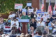 Although Sanders had not formally dropped out of the race, he announced on June 16, 2016, that his main goal in the coming months would be to work with Clinton to defeat Trump in the general election.[113] On July 8, appointees from the Clinton campaign, the Sanders campaign, and the Democratic National Committee negotiated a draft of the party's platform.[114] On July 12, Sanders formally endorsed Clinton at a rally in New Hampshire in which he appeared with her.[115] Sanders then went on to headline 39 campaign rallies on behalf of Clinton in 13 key states.[116]