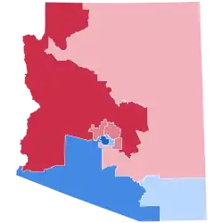 Donald Trump won Arizona with a margin of 3.5%, a reduced margin from Mitt Romney's 9.0% margin in 2012.[22] Arizona was among the eleven states in which Hillary Clinton outperformed Barack Obama's margin in 2012,[23] primarily due to an increase in Hispanic voter turnout in southern Arizona, including heavily populated Maricopa County. This was the weakest performance for a Republican in the state since 1992. Trump also lost the 2nd congressional district that Romney had won four years earlier.