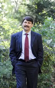 Following the outbreak of a controversy surrounding his 1992 doctoral dissertation, President Pál Schmitt announced his resignation to the National Assembly on 2 April 2012.[2] Fidesz politician and incumbent MEP János Áder was elected on 2 May to a five-year term by a vote of 262–40,[3] and assumed office on 10 May 2012.[4]