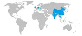 ![]() Nations that hosted a World Snooker Tour, Challenge Tour or World Seniors Tour event during the 2018–19 season | |