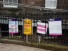 The University and College Union (UCU), a trade union representing around 110,000 staff at UK universities,[1] ran a major series of connected strikes and related industrial action from 2018 to 2023. The action has been characterised as "something of a milestone" for "impending service sector strikes of the 21st century."[2]