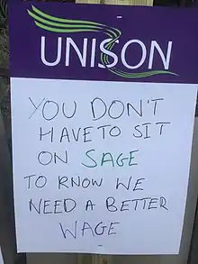 Shortly after, on 13 February, the trade union UNISON, many of whose members in the Higher Education sector were also USS members, began a consultative ballot on striking alongside UCU.[96] On 20 February, UNISON wrote to vice-chancellors in support of UCU's position.[97]