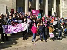 - Growing numbers of academic staff were on precarious short-term or zero-hours contracts – in 2018–19, 34% of academic staff were employed on short-term contracts and 13% were paid by the hour.[60][61] In March 2018, UCU argued on the basis of data from a freedom of information request that an average of 27% UK university teaching hours were delivered by such staff.[62] The issue of casualisation became increasingly prominent in UCU members' understanding of the strikes as they developed.[63] Similar concerns were being voiced across Europe, for example through the 2016 Bratislava Declaration[64][65] and the 2021 German #IchBinHanna movement.[66][67]