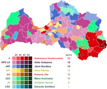 - ↑ "Saeimas vēlēšanas" (in Latvian). Latvian Central Election Committee. Archived from the original on 23 March 2016. Retrieved 23 December 2016.