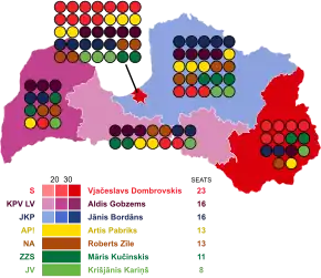 All 100 seats in the Saeima 51 seats needed for a majority | ||||||||||||||||||||||||||||||||||||||||||||||